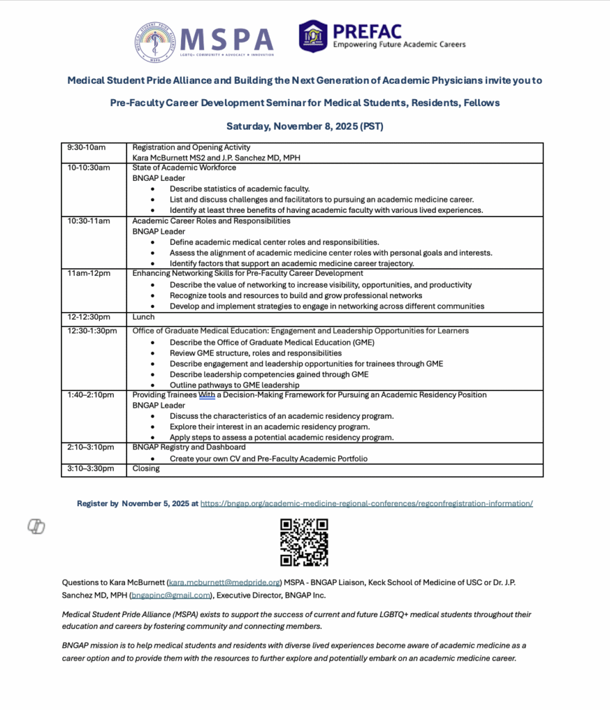 These regional seminars are OPEN TO ALL but are tailored to encourage trainees (medical students, residents, PhDs) who are underrepresented in medicine (women, LGBTQ, and racial and ethnic minorities) to consider academic medicine careers .